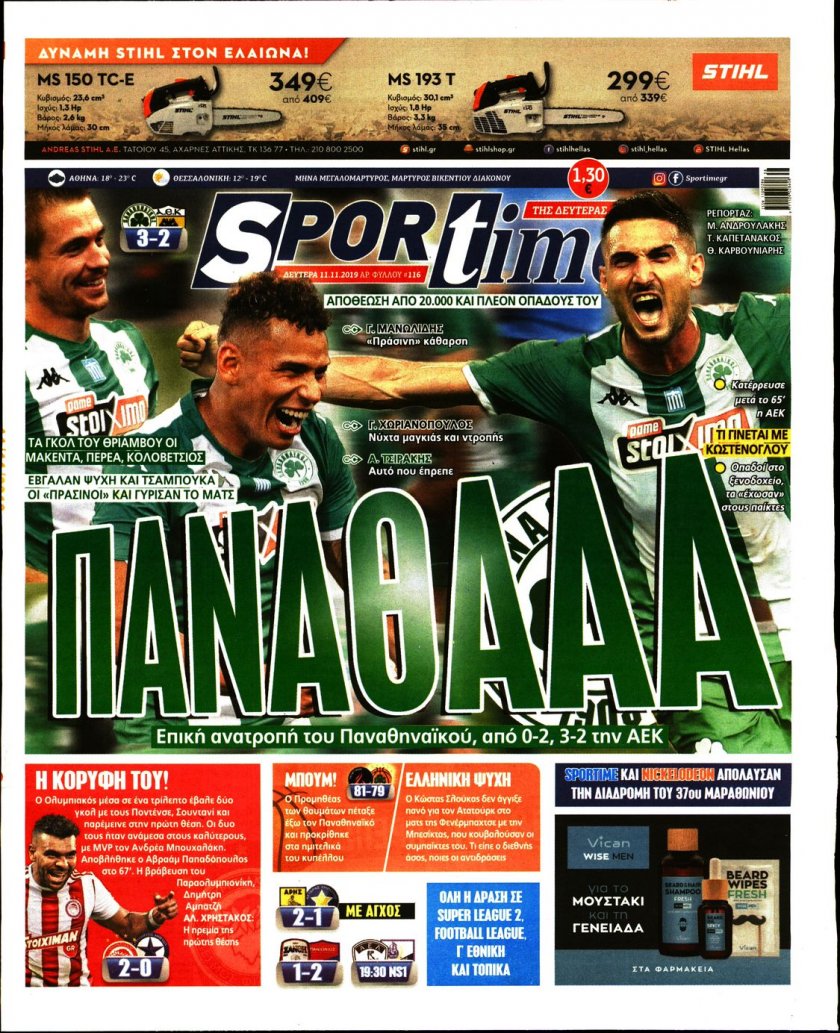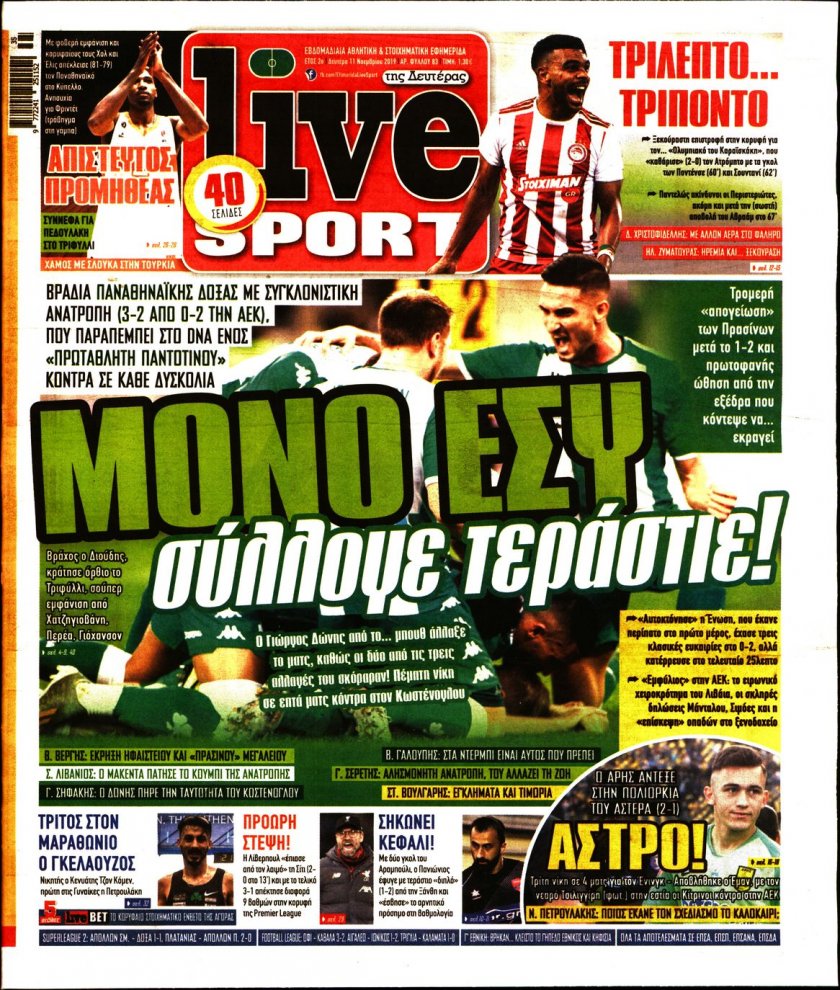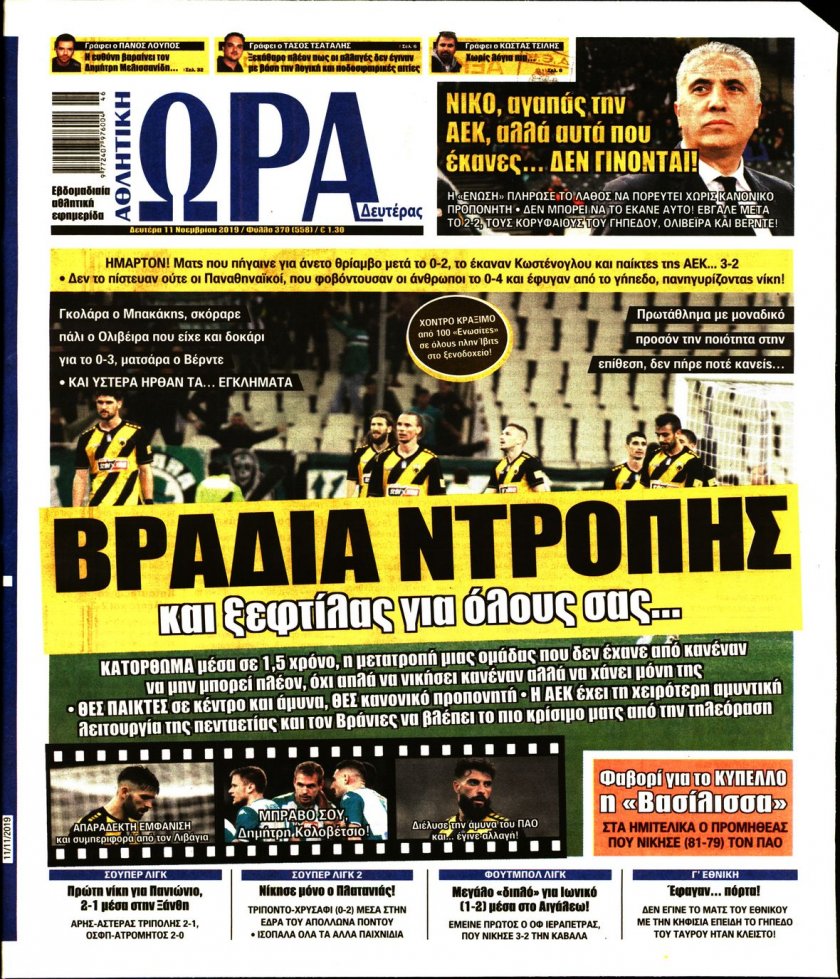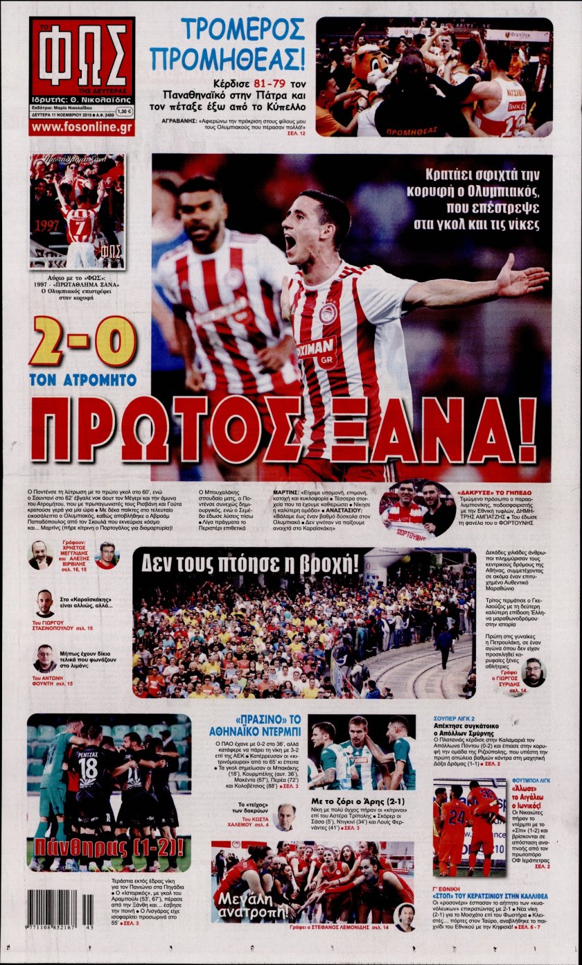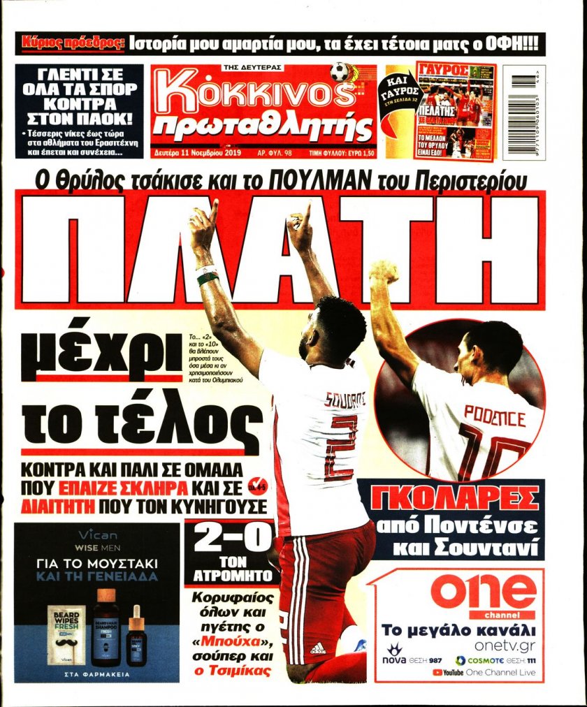 ΕΙΔΗΣΕΙΣ Τα πρωτοσέλιδα της Δευτέρας 11/11 11/11/2019 Posted by kitenimerosi.gr 11 Νοέ Δείτε παρακάτω τα σημερινά πρωτοσέλιδα των αθλητικών εφημερίδων: