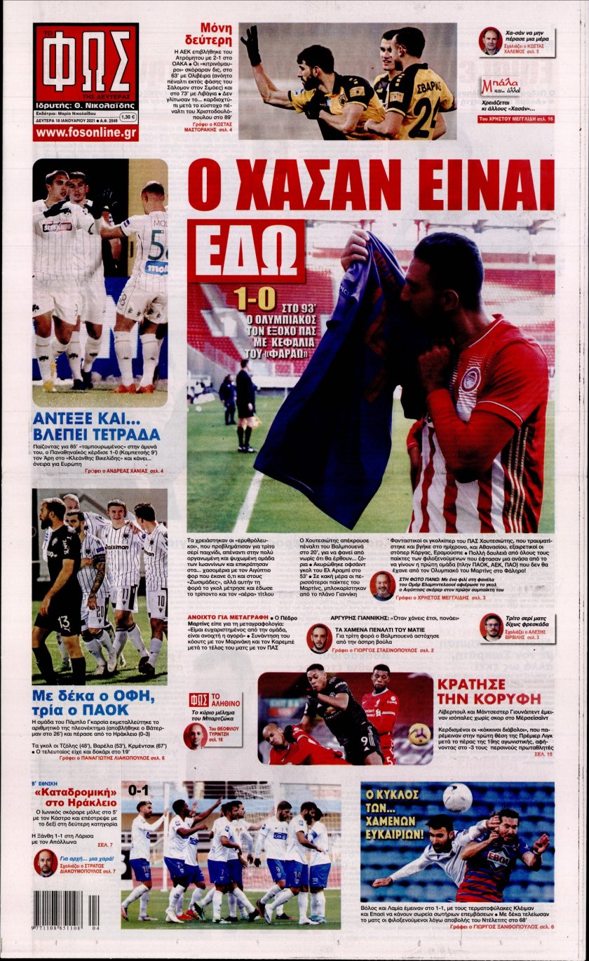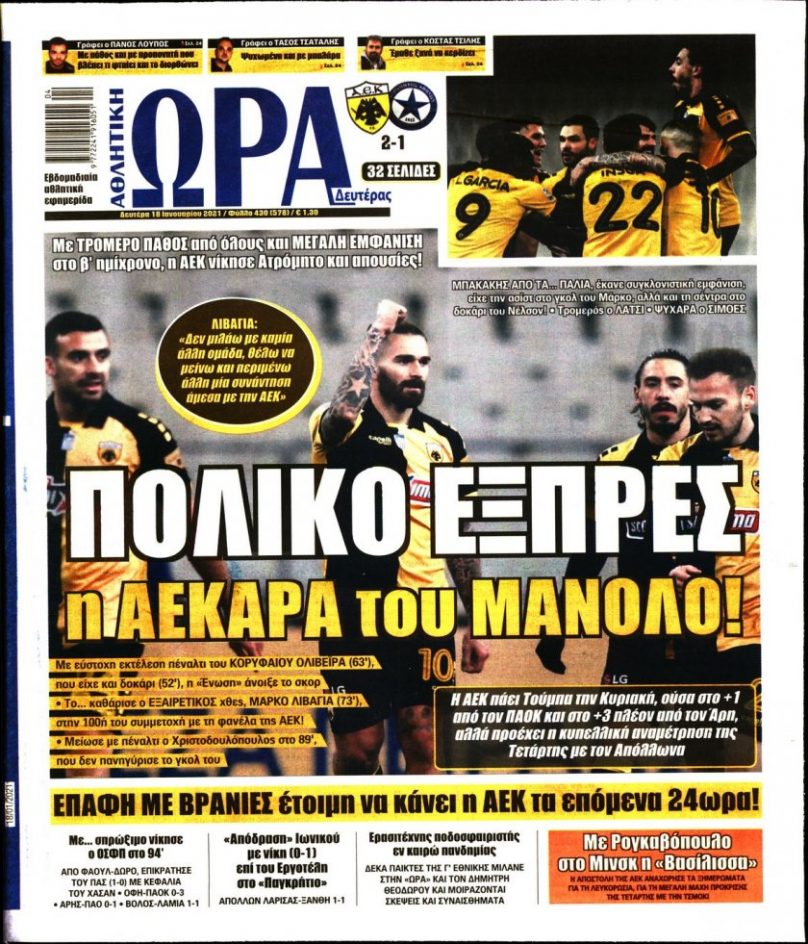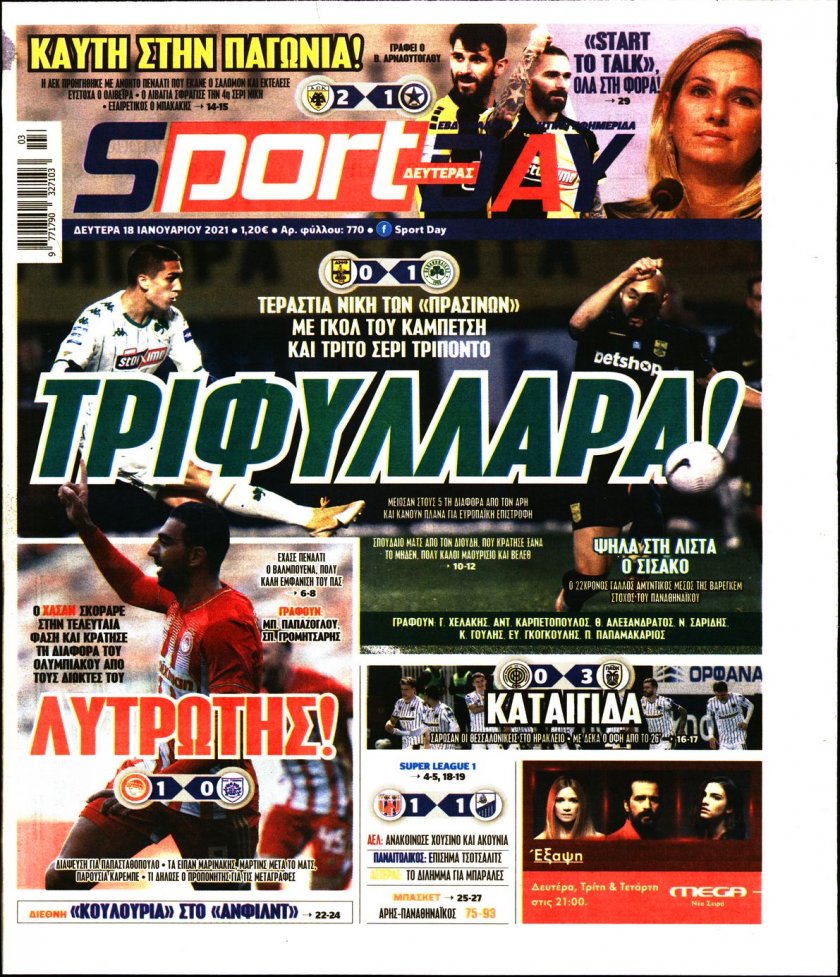 ΕΙΔΗΣΕΙΣ Τα πρωτοσέλιδα της Δευτέρας 18/01 18/01/2021 Posted by kitenimerosi.gr 18 Ιαν Διαβάστε τα σημερινά πρωτοσέλιδα των αθλητικών εφημερίδων: