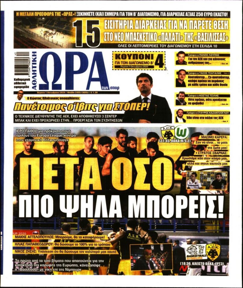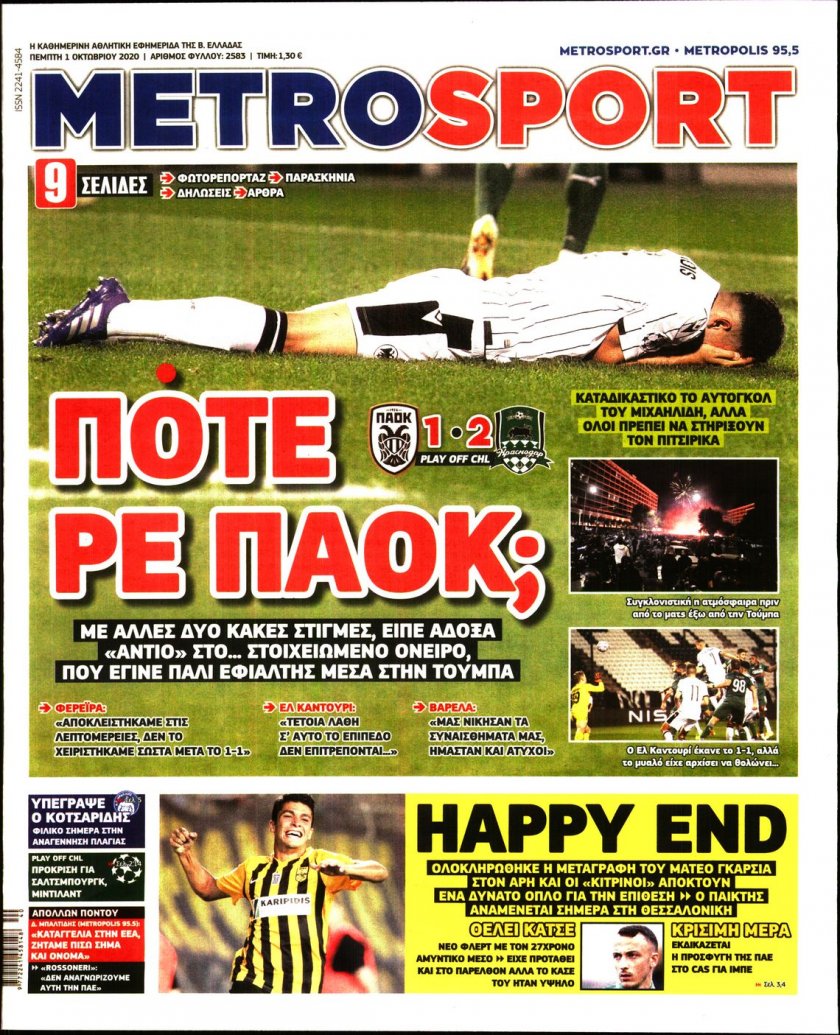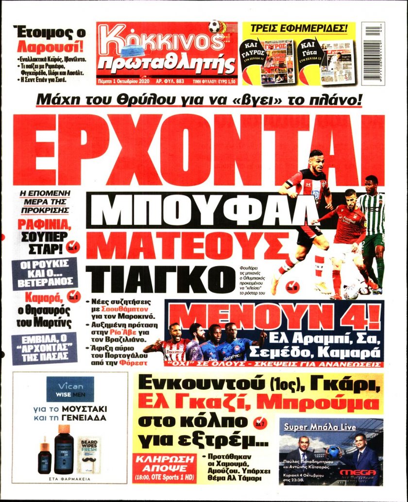 ΕΙΔΗΣΕΙΣ Τα πρωτοσέλιδα της Πέμπτης 01/10 01/10/2020 Posted by kitenimerosi.gr 01 Οκτ Δείτε τα σημερινά πρωτοσέλιδα των αθλητικών εφημερίδων: