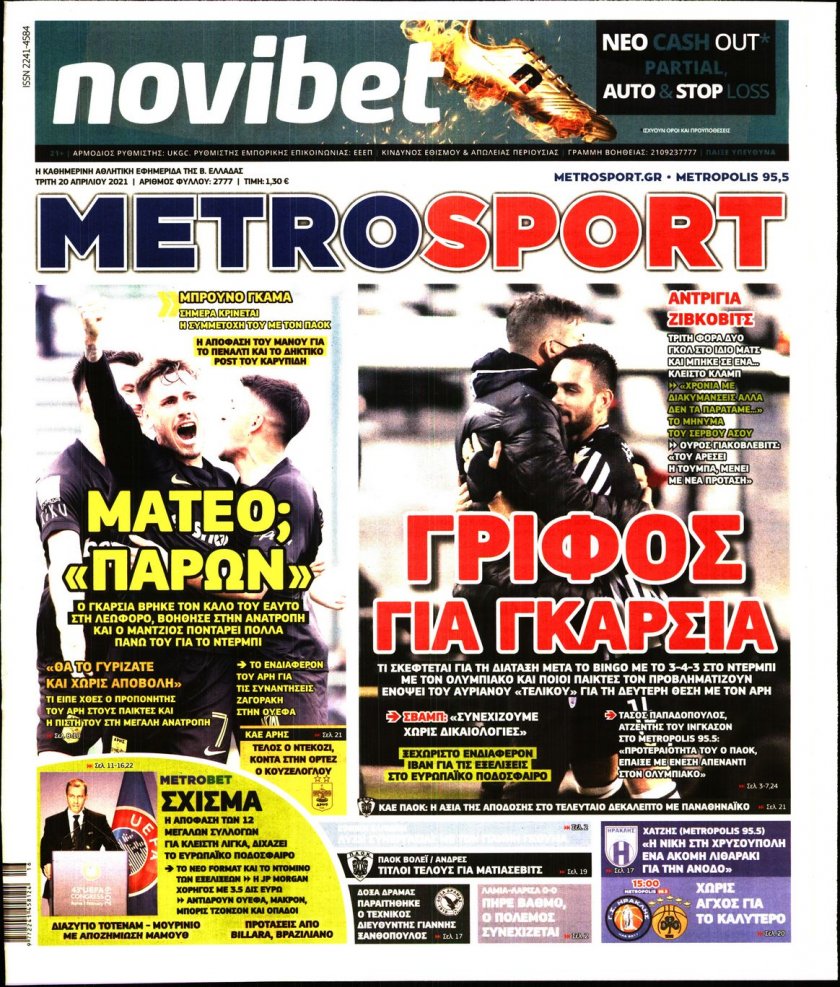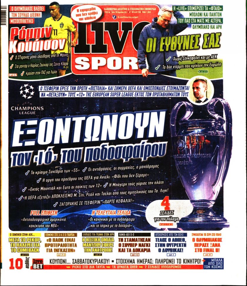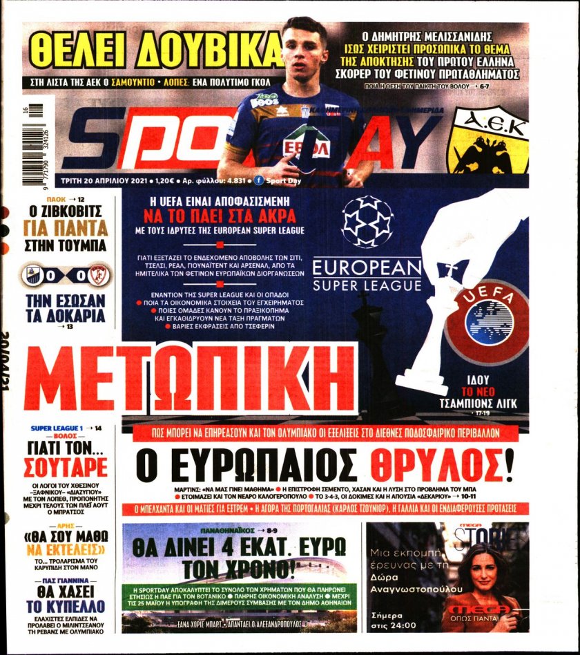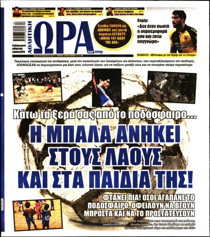 ΕΙΔΗΣΕΙΣ Τα πρωτοσέλιδα της Τρίτης 20/04 20/04/2021 Posted by kitenimerosi.gr 20 Απρ Διαβάστε τα πρωτοσέλιδα των σημερινών αθλητικών εφημερίδων: